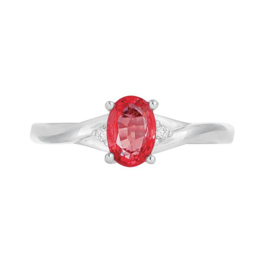 The deep, rich ruby takes center stage, exuding passion and timeless beauty, while the delicate 0.03CTW of diamonds add a touch of elegance and sparkle to the design. Set in luxurious white gold, this ring offers a perfect balance of bold colour and subtle refinement.