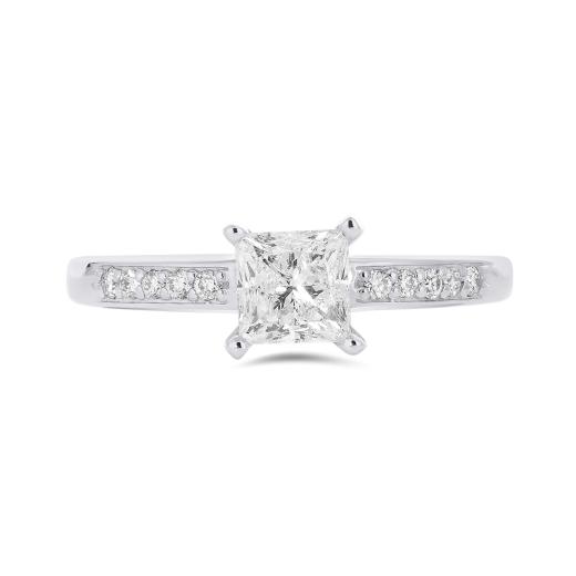 Make her feel like royalty with this chic Princess cut ring. Crafted in 14-karat white gold and completed with diamond set shoulders, this diamond ring is sure to rule.