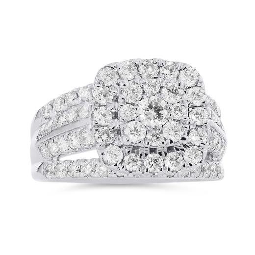 Give the gift of some serious bling with this beautiful 2.00ctw diamond fashion ring. A true statement piece that features a unique four-row band of diamonds that guide your eyes to the stunning centerpiece - a cluster of sparkling diamonds.