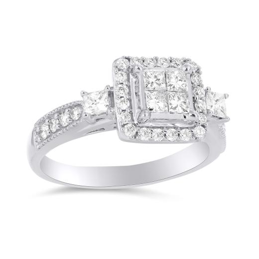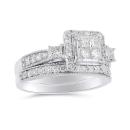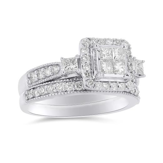 Created in perfect harmony, this 1ctw white gold bridal set is a perfect match. Featuring princess cut diamonds at its centre, this bridal set sparkles endlessly with romantic details.