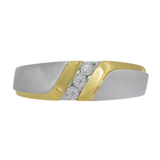 Introducing the epitome of elegance and masculinity, the 10K Two-Tone Gold 0.05CTW Men's Diamond Wedding Band. Crafted to perfection, this masterful piece of jewellery is a symbol of timeless commitment and unparalleled style.