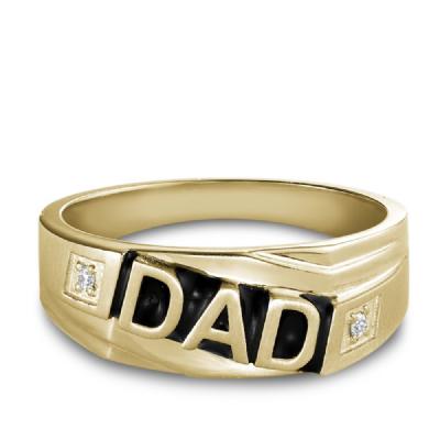 Make DAD’s day even more special with this stylish fashion ring. Fashioned in warm yellow this, this rings features DAD spelled out in bold letters, brilliant round diamonds frame either side to complete the look.