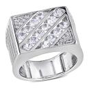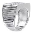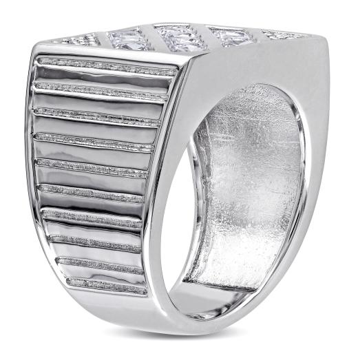 This handsome ring features 28 round-cut Created white sapphires stones set in sterling silver. This stylish men's jewelry is enhanced with a high polish finish.