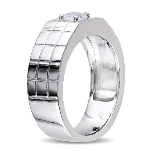 This gorgeous ring features a round-cut Created white sapphire set in sterling silver. This elegant ring is enhanced with a high polish finish.
