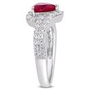 This gorgeous crossover heart halo ring is crafted in lustrous sterling silver and features a heart-cut, prong-set created ruby at the center with 44 round-cut, prong-set diamonds in a unique heart halo bypass design. This stunning ring is the perfect choice for your loved one. Whether worn as an engagement ring or simply a stunning new gemstone and diamond addition, this ring is sure to make a valuable addition to any jewelry collection.