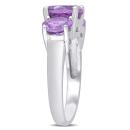 This beautiful three-stone ring from the Collection features three round-cut amethyst stones. This gorgeous ring is crafted of fine sterling silver and glimmers with a highly polished finish.