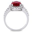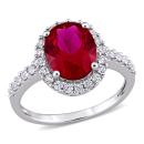 Radiate your feminine glow with this elegant Created Ruby and Created White Sapphire Halo Ring. Mounted in lustrous white gold, it features an oval-cut, prong-set created ruby gemstone (10 x 8mm) at the center with 30 round-cut, buttercup-set created white sapphire gemstones forming a halo and studded along the band. Enhanced with a high polish finish, this gemstone halo ring makes the perfect addition to any jewellery collection.