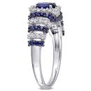 Give yourself a glamorous look when you wear this enchanting Created Blue Sapphire and Created White Sapphire Ripple Ring. Crafted in lustrous sterling silver, it features a gleaming oval-cut, prong-set created blue sapphire gemstone (6 X 4mm) in the center with a halo of round-cut, prong-set shimmering created white sapphire gemstones. It also showcases 36 dazzling round-cut, prong-set created white sapphires and 40 round-cut, prong-set created blue sapphire gemstones forming alternating rows down the band. Enhanced with a high polish finish, this charming gemstone ring makes a fashionable addition to any jewelry collection.