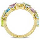 Add classic elegance and romance to your everyday look with this exceptional Multi Semi-Precious Gemstone Semi-Eternity Ring. Crafted in sparkling yellow rhodium-plated sterling silver, this ring features oval-cut, prong-set sky and swiss blue topaz, rose de France, citrine, and peridot gemstones (6 x 4mm) with 18 smaller round-cut, prong-set white topaz gemstones (1.75 x 1.75mm) elegantly placed between them to add a sparkle to the eye. Enhanced with a high polish finish, this stunning colorful gemstone ring will be a symbol of your eternal love and bond.