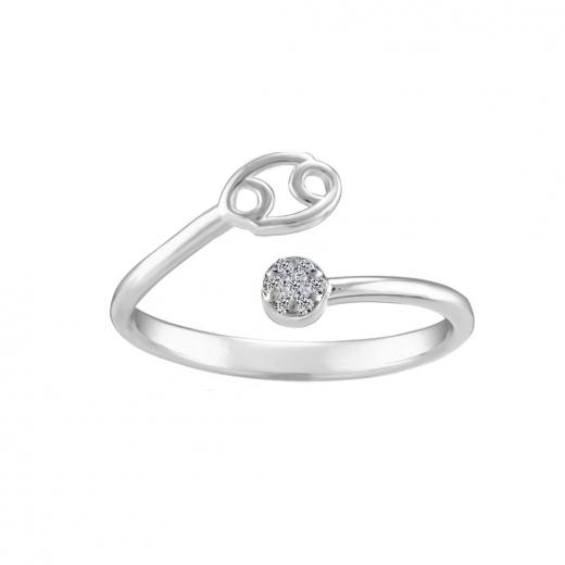 The ring features the Cancer symbol, intricately engraved and adorned with sparkling diamonds, which add a touch of luxury and radiance.
