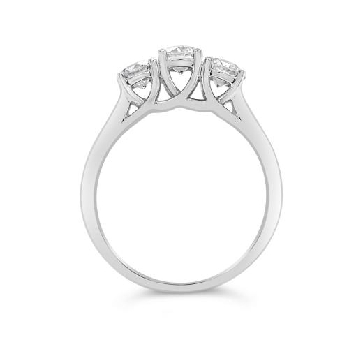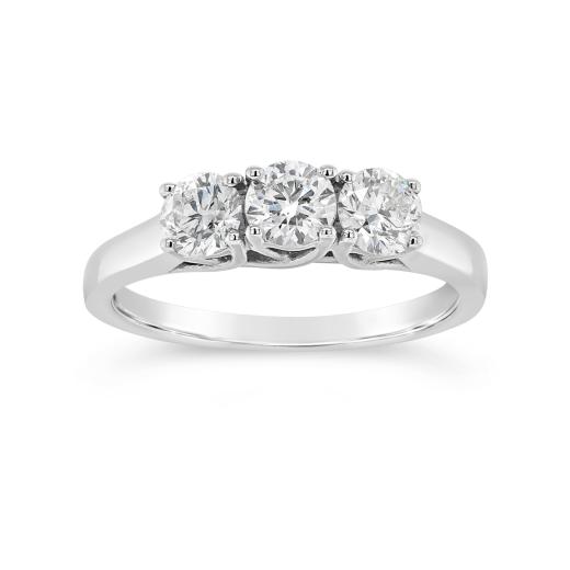 Crafted in 14kt white gold, this Lab Grown diamond three stone anniversary ring is impressive with a 1.00ctw round brilliant cut lab grown diamonds. New Brilliance Lab Grown Diamonds- Lab grown diamonds possess all physical, optical and chemical characteristics of a natural mined diamond. They are a cost effective option without compromising the size and quality of the diamond. With normal day to day wear, your lab grown diamond will provide a lifetime of beauty.