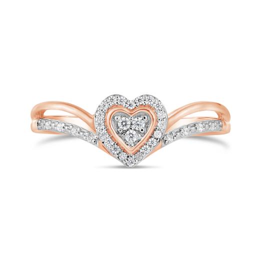 The 10K Rose Gold 0.10CTW Diamond Heart Ring is a captivating and elegant piece of jewellery. Its exquisite design and sparkling diamonds make it a perfect choice for both special occasions and everyday wear, allowing you to carry your love and style with grace.