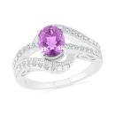 This bold and modern ring is crafted in lustrous sterling silver and features a genuine oval cut amethyst and shimmering created white sapphires. Bursting with vibrancy and elegance, this gemstone rings is sure to be a standout addition to any jewellery collection.