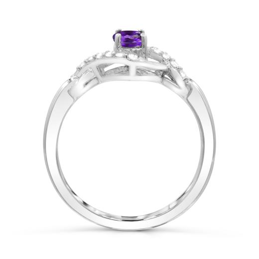 This modern yet classic, infinity design ring is crafted in gleaming sterling silver and is sure to become a favourite item in your jewellery collection.  This item is perfectly adorned with shimmering white topaz and an oval cut amethyst, which is the birthstone for February. If you are looking for something stunning, order this for yourself or someone you love today!