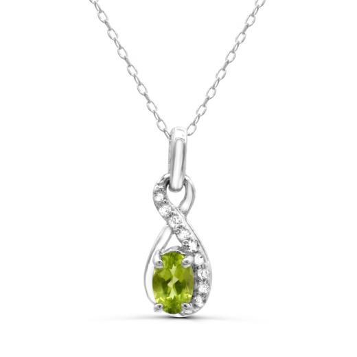 This modern yet classic, infinity design ring is crafted in gleaming sterling silver and is sure to become a favourite item in your jewellery collection. This item is perfectly adorned with shimmering white topaz and an oval cut peridot, which is the birthstone for August. If you are looking for something stunning, order this for yourself or someone you love today!
