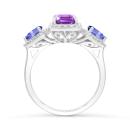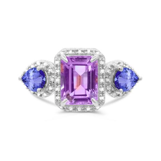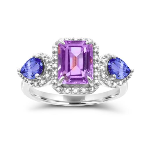 This fantastic cocktail ring is set with an octagon cut amethyst, pear cut tanzanite and shimmering round-cut diamonds. Crafted in cool, gleaming sterling silver, this ring will make you standout in any crowd!