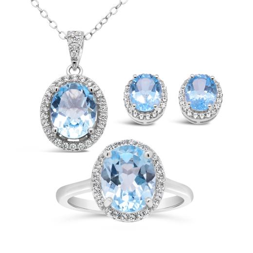 Give the gift of sparkle with this lovely blue topaz and lab created white sapphire 3 piece set. Each piece is set in sterling silver and can be worn individually to add some shimmer or as a set to be the signature of any look.