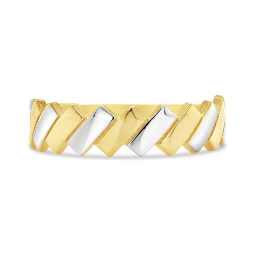 Crafted in the luster of 10k yellow and white gold is a stylish and modern bar ring. The ring is enhanced with a high polish that gives definition to the design. A ring that can be worn with casual or work wear and surely to be noticed by all. Buy this beautiful piece for yourself or for that special someone in your life.