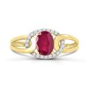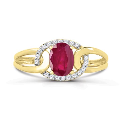 Luxurious, classic and ageless are all words to describe this spectacular ruby and diamond ring. Designed in lustrous 10k yellow gold, the ring features an oval ruby orbited by sparkling diamonds. A gorgeous choice for any occasion.
