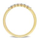 This pretty stackable semi-eternity band is crafted in 10-karat yellow gold. This sleek diamond ring features seven round-cut shimmering diamonds that are beautifully embellished on the ring in a prong setting. Enhanced with a high polished finish, this exquisite style is lovely alone or paired with her diamond engagement ring. This diamond ring is a beautiful reminder of your timeless romance. Celebrate your everlasting love story with this stacking wedding ring.