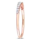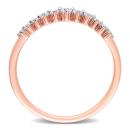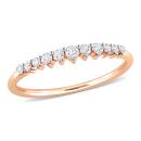 This pretty stackable semi-eternity band is crafted in 14-karat rose gold. This sleek diamond ring features 11 round-cut shimmering diamonds that are beautifully embellished on the ring in a prong setting. Enhanced with a high polished finish, this exquisite style is lovely alone or paired with her diamond engagement ring. This diamond ring is a beautiful reminder of your timeless romance. Celebrate your everlasting love story with this stacking wedding ring.
