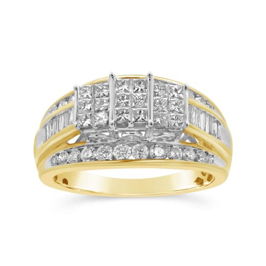 Elevate your style with the timeless beauty of the 10K Yellow Gold 1.00CTW Princessa Diamond Ring. This exquisite ring features a stunning array of princess-cut diamonds, totaling 1.00 carats, set in a lustrous 10K yellow gold band. The princess-cut diamonds, known for their distinctive square shape and brilliant facets, create a captivating display of light and sparkle. The classic design of the ring makes it a versatile and elegant addition to any jewellery collection. Whether worn as an engagement ring, a statement piece, or a symbol of achievement, this ring is a testament to enduring style and sophistication.