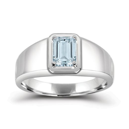This bold men's ring features a stunning aquamarine gemstone set in polished sterling silver. The cool blue hue of the aquamarine contrasts beautifully with the sleek silver band, creating a sophisticated and masculine design that adds a refreshing pop of colour to any ensemble.