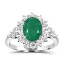 This sterling silver ring features a stunning emerald center stone, surrounded by a halo of sparkling white zircon stones. The contrast between the rich green emerald and the radiant white zircons creates a striking and elegant effect.