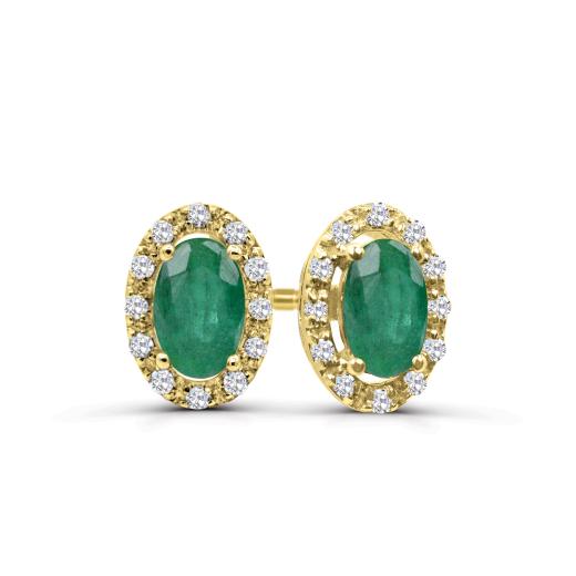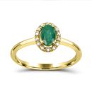 This 10K yellow gold ring features a stunning emerald at its center, surrounded by a halo of dazzling diamonds. The rich green of the emerald contrasts beautifully with the sparkling diamonds, creating a piece that is both elegant and eye-catching. The warm yellow gold setting enhances the brilliance of the gemstones, making this ring a timeless addition to any collection.