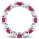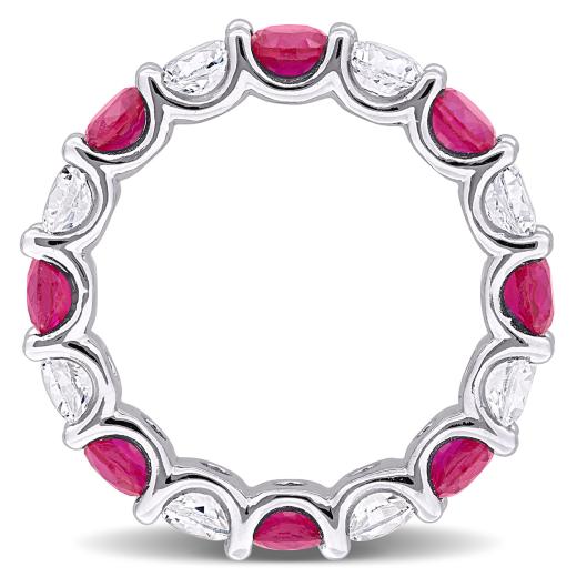 This sterling silver eternity ring, adorned with a stunning 5ct TGW created rubies and created white sapphires exudes timeless allure. The fiery red hues of the created ruby harmonize with the brilliance of the white sapphires, creating a mesmerizing contrast. With impeccable craftsmanship, this ring epitomizes elegance and eternal beauty in every shimmering facet.