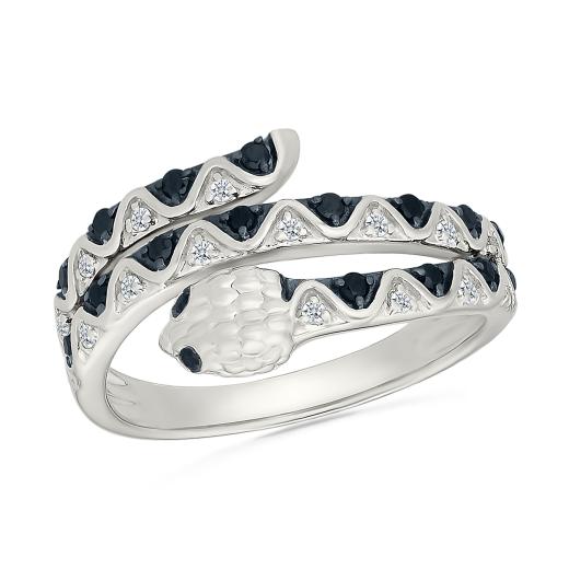 Wrapping elegantly around your finger, this 0.23CTW black & white diamond snake ring shines in sterling silver exuding both elegance and intrigue. The serpentine design is adorned with a bold black diamond pattern, adding a touch of mystery and sophistication. This distinctive ring is the perfect balance of edgy style and refined charm