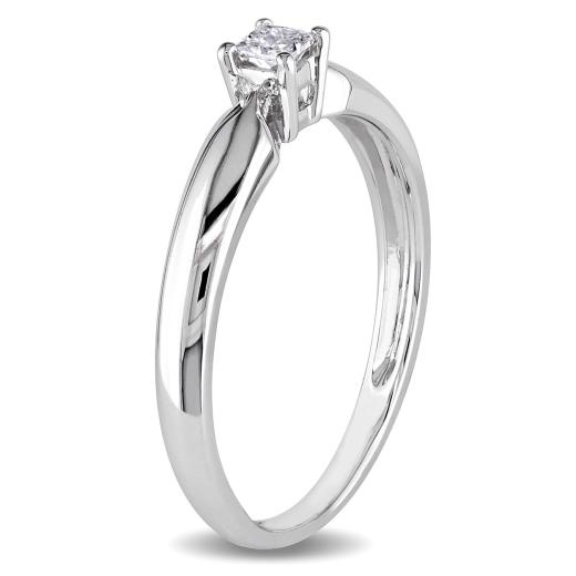 This delicate 1/10 CT Princess Diamond Solitaire Ring is crafted in 10k white gold, offering a simple yet refined design. The centerpiece is a sparkling princess-cut diamond, known for its clean lines and modern elegance. The diamond is beautifully set on a sleek, polished white gold band, enhancing its brilliance and creating a timeless look. Perfect for those who appreciate understated beauty, this ring is an ideal symbol of love and commitment, combining sophistication with a touch of sparkle.
