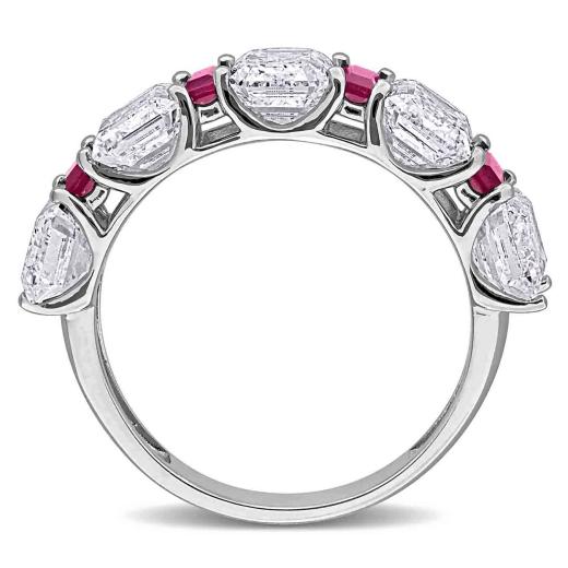 Striking 14K White Gold Yellow Plated Fashion Ring Featuring 5 CT Octagon Lab-Grown Diamonds and 1 CT Created Rubies — For a Distinctive Look.