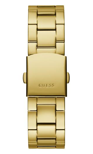 Take your style to new levels with this classic gold-tone analog watch, complete with a black dial. U1194G3
